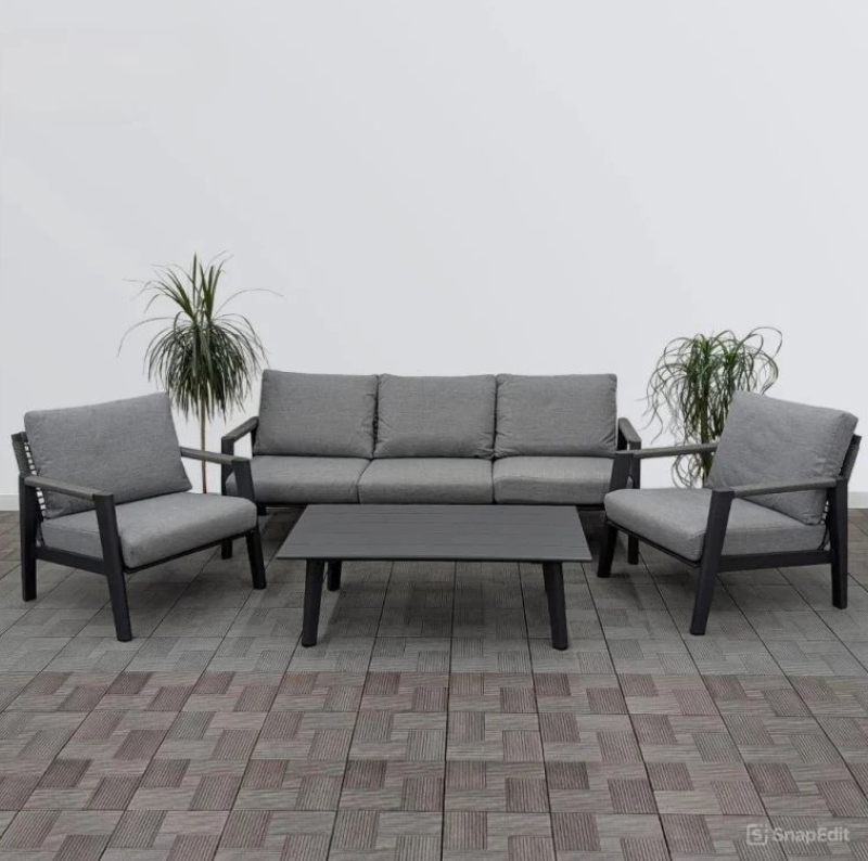 Вдохновленная утонченной элегантностью и современными тенденциями, коллекция HANA предлагает идеальное сочетание стиля и комфорта. Этот изысканный комплект мебели, состоящий из трехместного дивана и двух кресел, выполнен в благородном тёмно-сером цвете. Каждое кресло и диван акцентированы мягкими серыми подушками, которые не только добавляют удобства, но и придают интерьеру особую теплоту и уют.